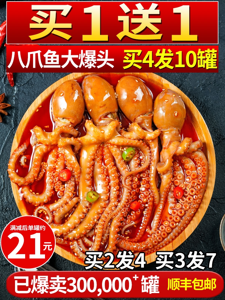 八爪鱼大爆头即食麻辣小海鲜熟食