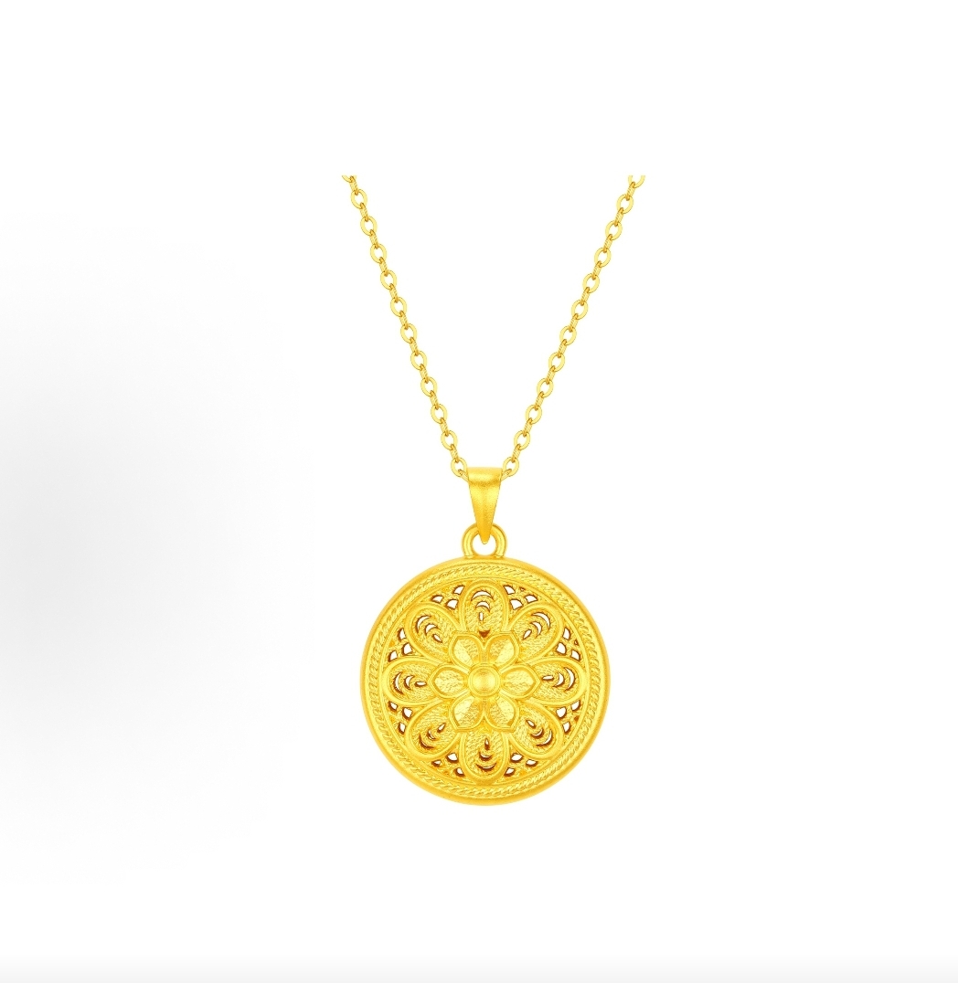 老凤祥 花开富贵八宝罗盘 新中式国风复古优雅设计显白贵气感转运顺遂好运 足金 按克计价 项链 男女同