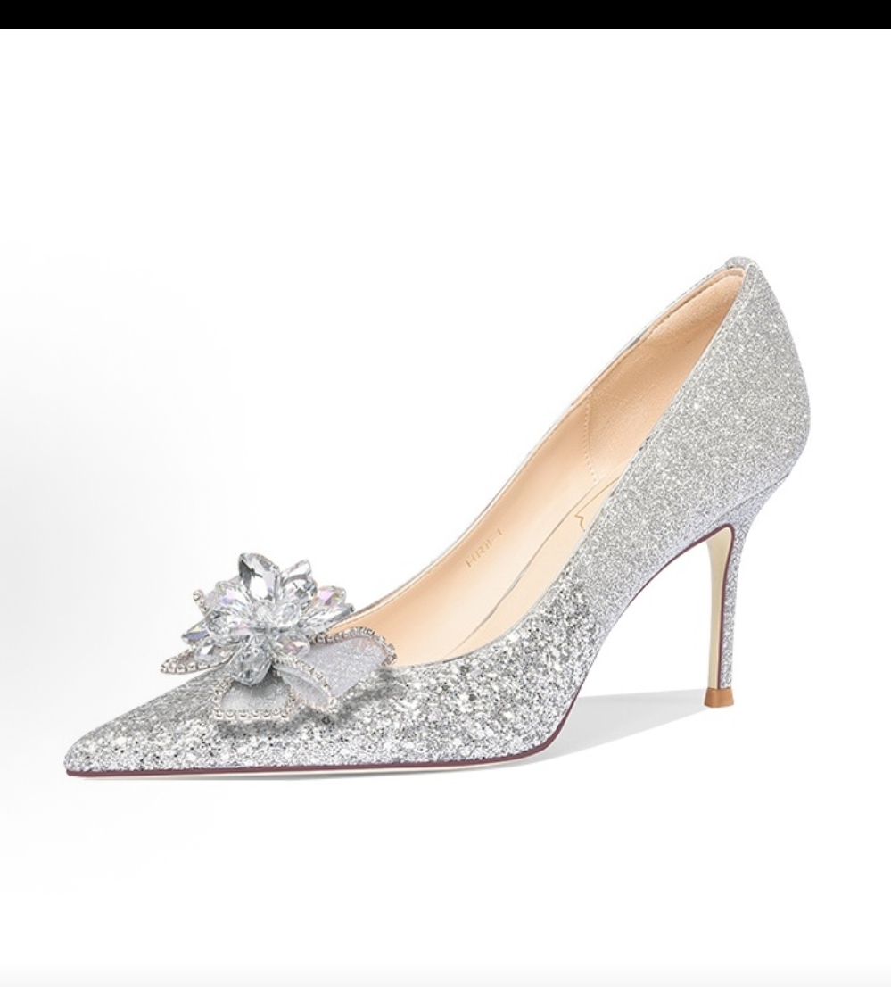 Holy Rose 圣洁玫瑰花嫁星辰佳人 水晶鞋 礼盒款 蝴蝶结银色公主风法式婚鞋 纪念高跟鞋 女款